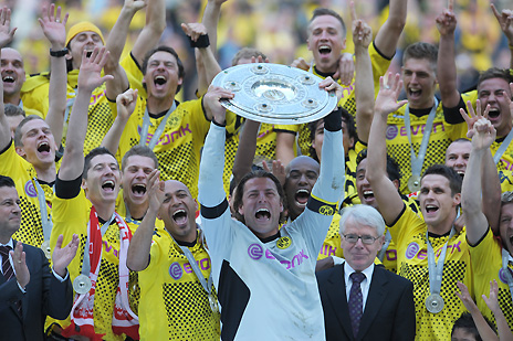 Урааа мы это сделали!! Поздравляю всех болельщиков Боруссии с чемпионством!!! С 2002 года Боруссия не становилась чемпионом Германии и сейчас мы в 2011 году выйграли этот чемпионат! Боруссия Дортмунд обыграв Айнтрах со счётом 3-1 получила золотые медальки и отправила Айнтрах во вторую лигу. Ещё раз всех с Чемпионством.. Слов нет одни эмоции.