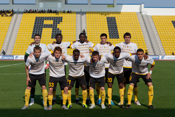 Также стоит отметить, что на поле команды вышли в футболках с поддержкой капитана команды, Важи Тархнишвили, получившего травму в прошлом матче с «Динамо». После чего и началась игра.