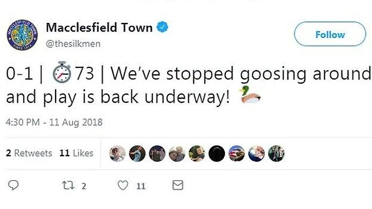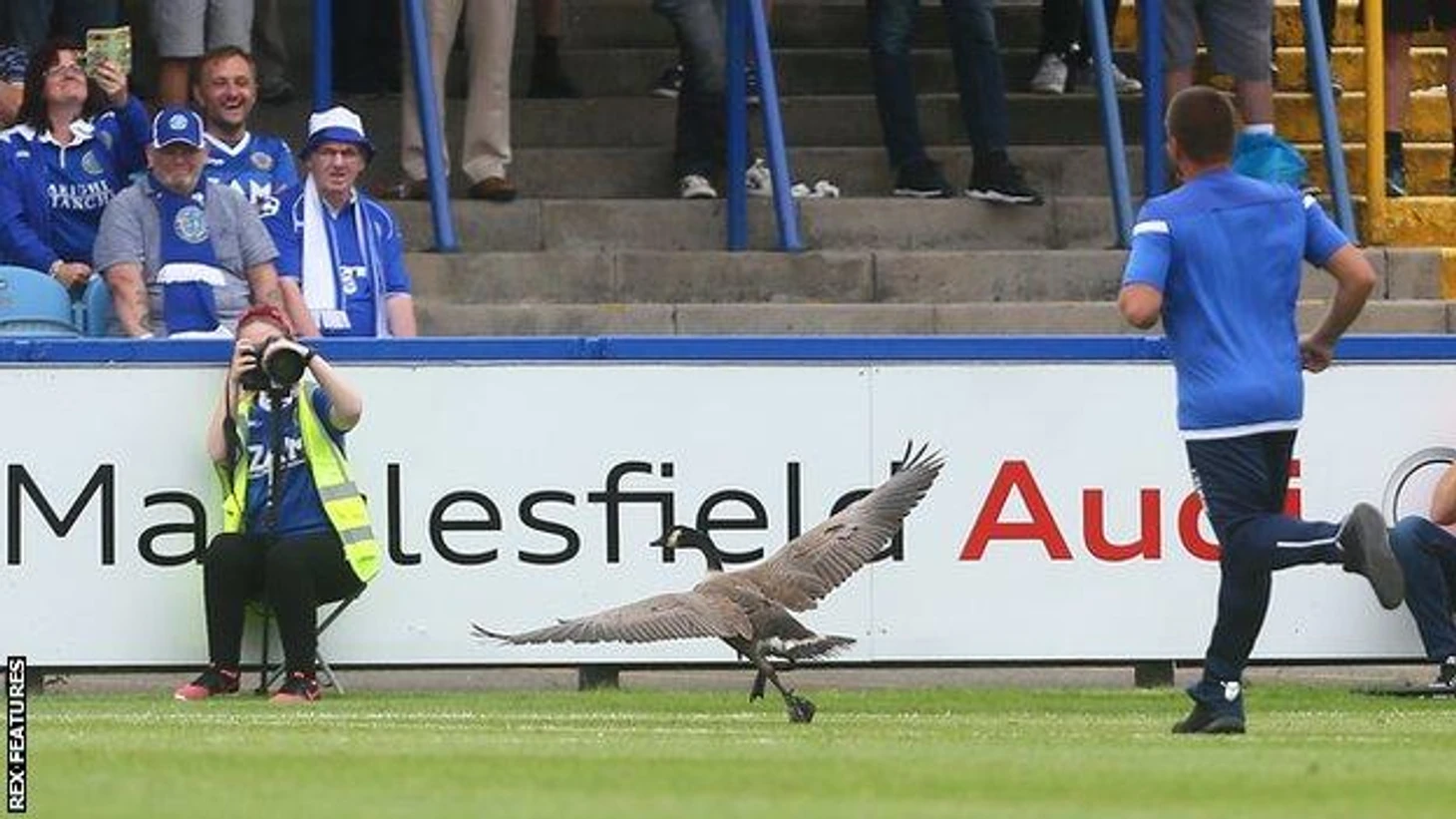 Наверное, это наименее вероятная причина для остановки игры, но это произошло во время первого домашнего матча "Маклсфилда" в EFL против "Гримсби Таун".