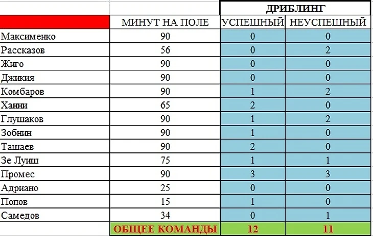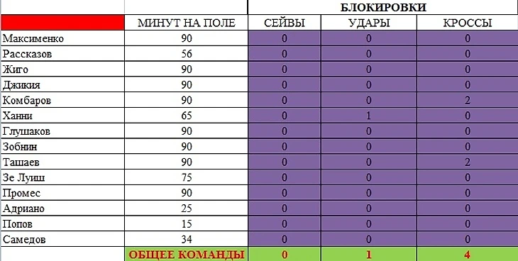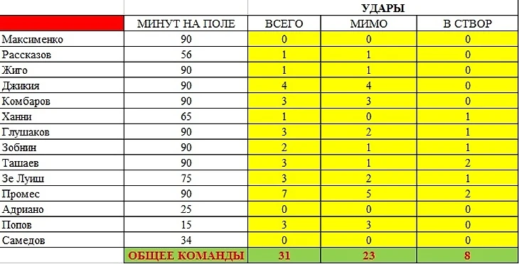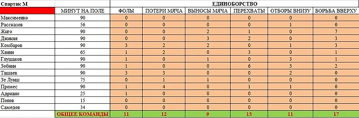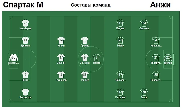Рассмотрим игру Спартак Москва и Анжи в прошлую субботу.