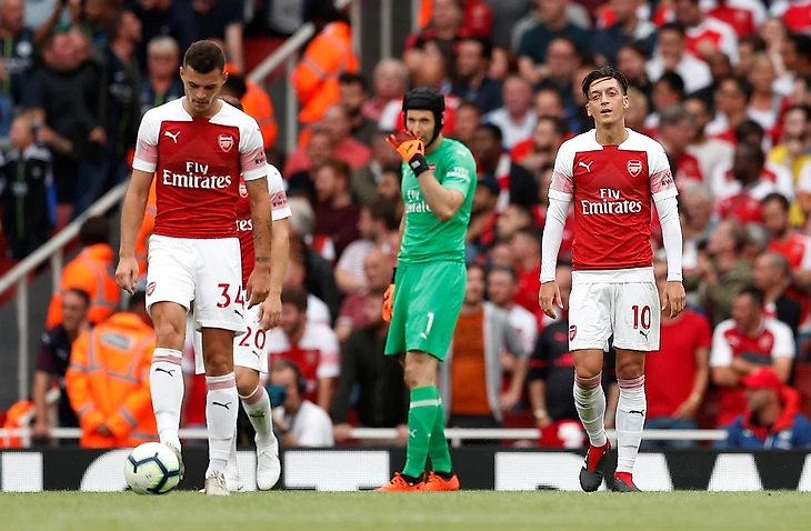 Голы в матче случались в тех ситуациях, когда "Манчестер Сити" взвинчивал темп и начинал действовать чуть более креативно чем всегда. В эпизоде с первым голом Менди увел Озила за собой, создав тем самым пространство для Стерлинга, который сместился в центр и точно пробил в дальний угол. Не усмотрел за ним в этой ситуации Гендузи. Во втором голе так же можно отчасти винить молодого Гендузи, Джаку, и Лихтштайнера. Первый забил на возвращение из атаки в оборону, второй находился в полупозиции в момент удара, вел себя пассивно (как всегда) и даже не откликнулся на передачу, третий же категорически не успел за рывком Силвы.