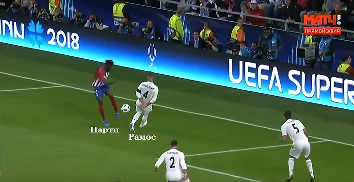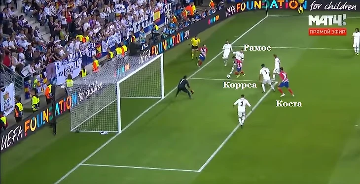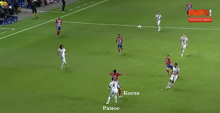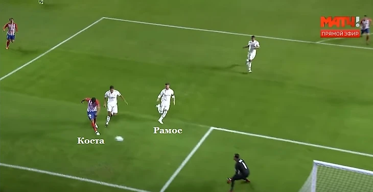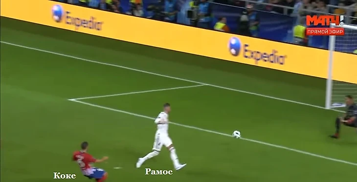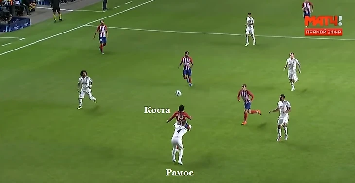 Рамос был в прекрасной позиции для того, чтобы хотя бы попытаться обезмячить Анхеля Корреа, который секундами спустя сделает голевую передачу на Диего Косту.