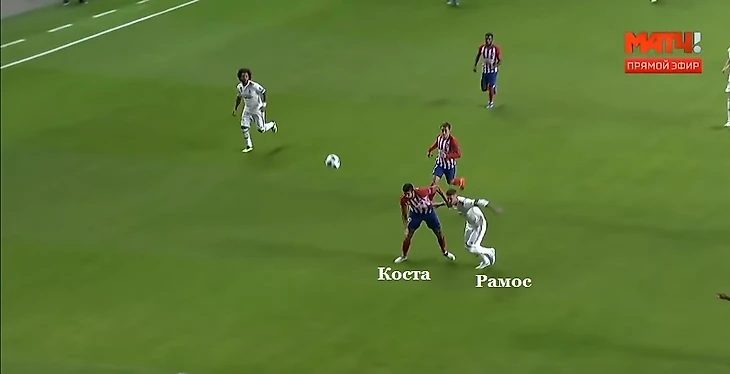 Сначала Рамос проиграл верховую дуэль Диего Косте.