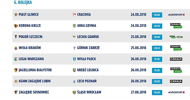 Тур закрывался матчем во Вроцлаве, где встречались две команды, от которых ждали большего на старте, но матч ожиданий не оправдал. Совершенно скучный первый тайм с практически полным отсутствием моментов у ворот команд. У обеих команд имелись проблемы с комбинированием впереди..и не только. Защита хозяев регулярно упускала соперников на стандартах, а гости частенько заигрывались у своих ворот при выходе из обороны. Во втором тайме ошибок стало меньше и игра шла до первого забитого мяча. Его болельщики не увидели. Самый хороший шанс упустил нападающий «Слёнска» Марцин Робак, который обыграл вратаря соперников и пробивал по пустым воротам, но защитник гостей успел заблокировать удар и перевести мяч на угловой. У гостей опасно издали пробивал Кожуль, но мяч прошел чуть выше перекладины. Безголевая ничья при невзрачной игре в исполнении обеих команд, что вряд ли устроит вроцлавлян и щецинцев.