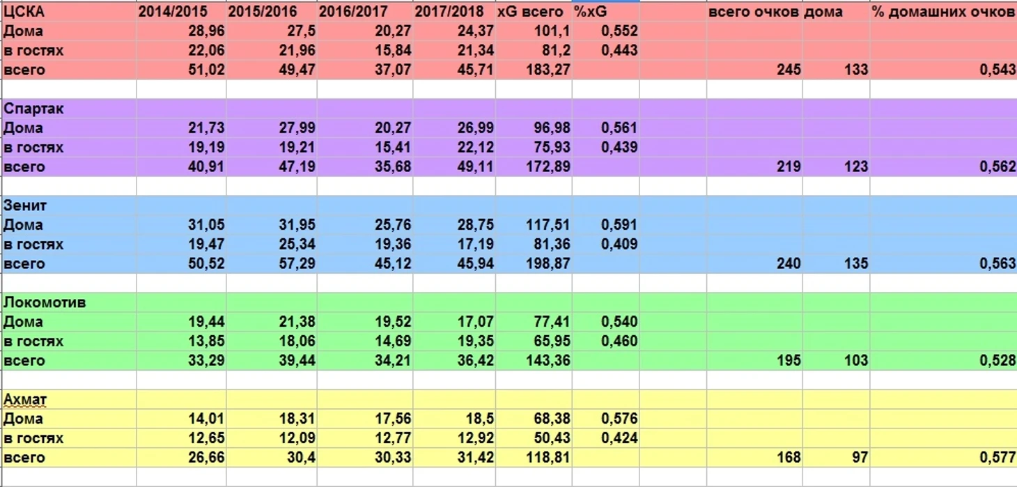 Для пущей объективности я взял 9 команд Российской Премьер Лиги: