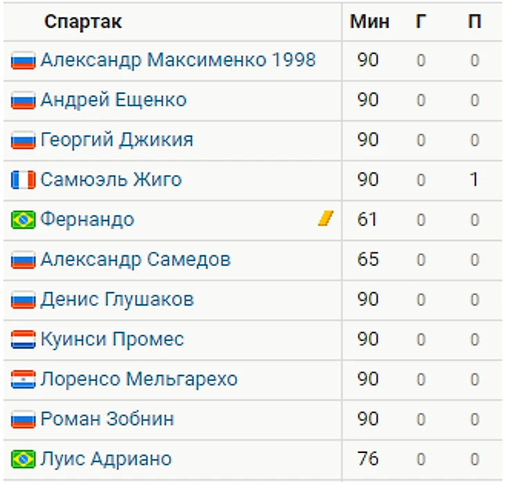 Состав с "Краснодаром":