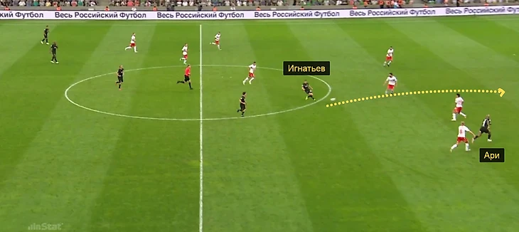 Один из самых опасных моментов «Краснодара» за матч – удар Мамаева с лета – тоже возник после приема Ари передачи из глубины.
