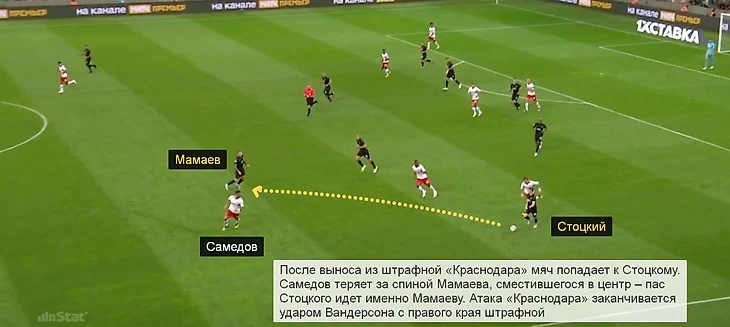 За счет смещений Самедова в центр при позиционной обороне «Спартак» возвращался в несколько матчей по ходу сезона-2017/18, в сборной Станислав Черчесов тоже использовал Александра гораздо ближе к центру, чем левого полузащитника. «Краснодар» –  комбинационная команда, надо играть уже, чтобы не давать им пространства», – рассказал Самедов в перерыве.