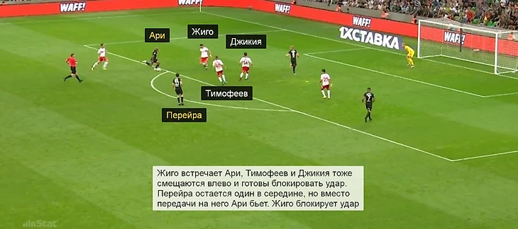 1 нанесен с очень острого угла, а 1 – выход после классной передачи Игнатьева вразрез. Этот момент нужно было реализовывать, но Ари плохо подработал мяч на ход.