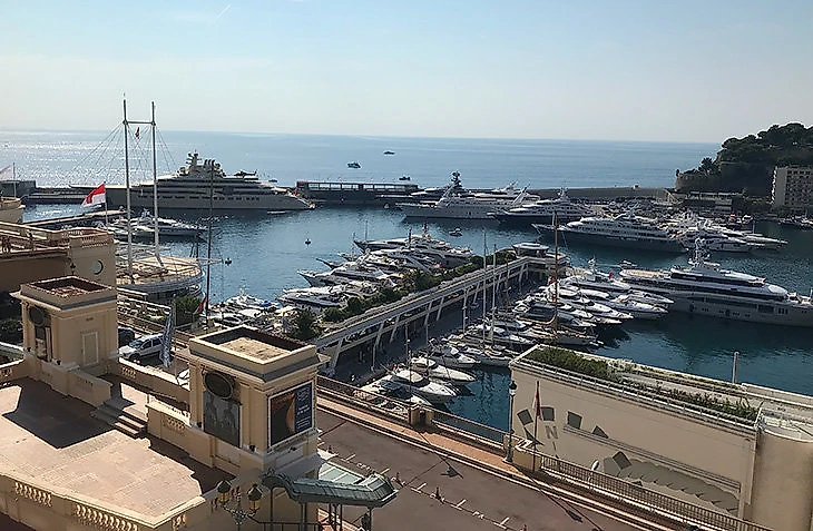 С балкона – вид на лазурную бухту, усыпанную длинными яхтами.