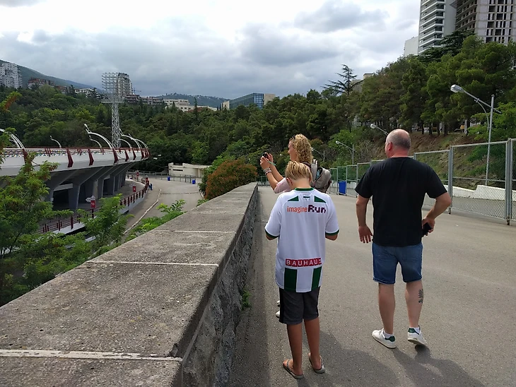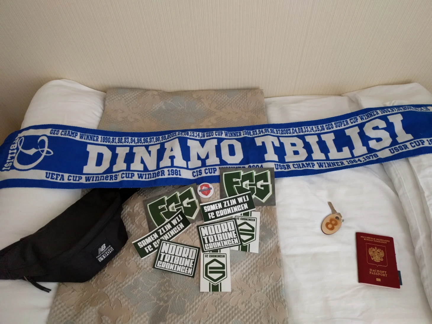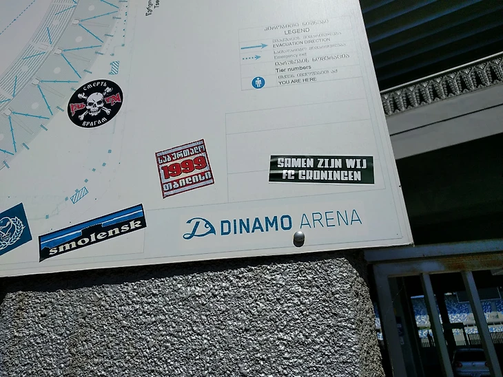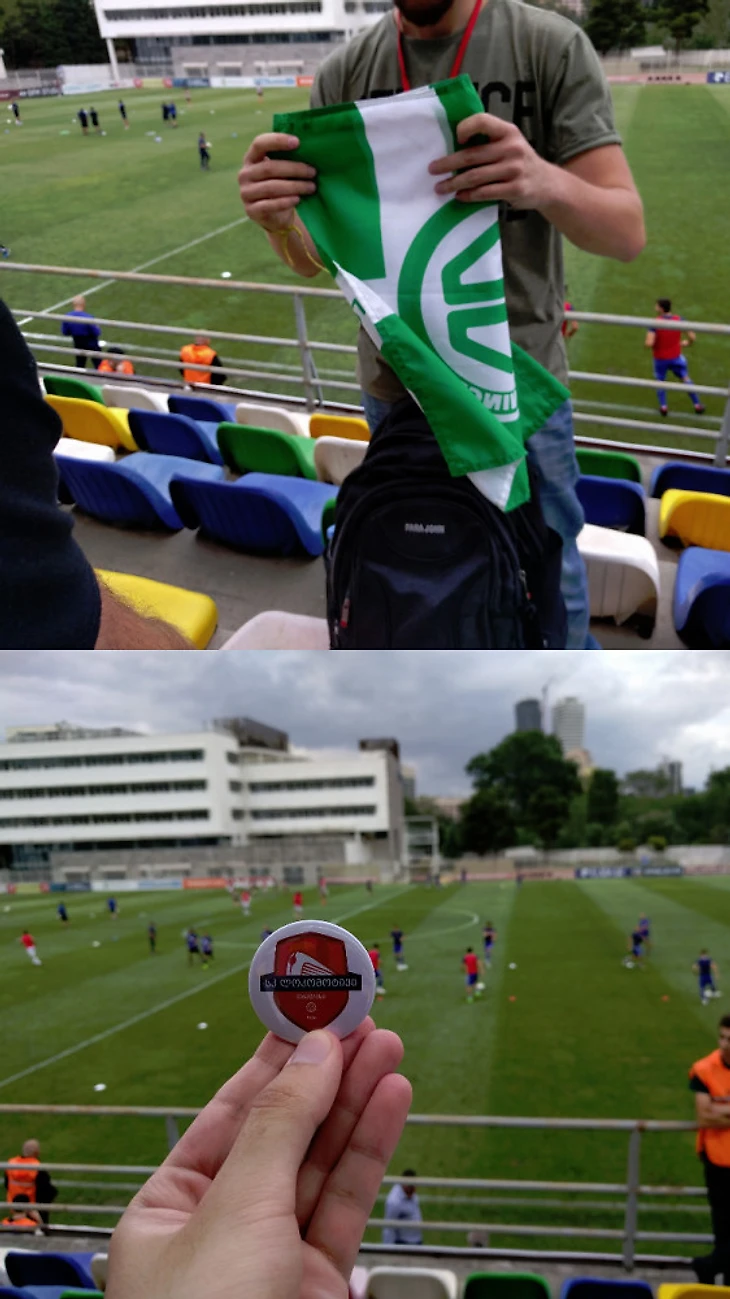 Оказалось, что Джон заранее связался с пресс службой обоих клубов, с представителем Локомотива Тбилиси был произведен обмен атрибутикой. Ему передали шарф и флаг ФК Гронинген, а голландцам подарили футболку и значки, один из значков достался мне. Представитель Динамо Тбилиси предложил на следующий день провести экскурсию по стадиону Динамо-Арена имени Бориса Пайчадзе, голландцы пригласили и меня заодно. На следующий день я поведу их на стадион, так как день назад я был там и знал дорогу, хотел купить шарф Динамо Тбилиси в фаншопе, но их не было в продаже. Еще у голландцев не было местной sim карты, также мне приходилось быть переводчиком с русского на английский.