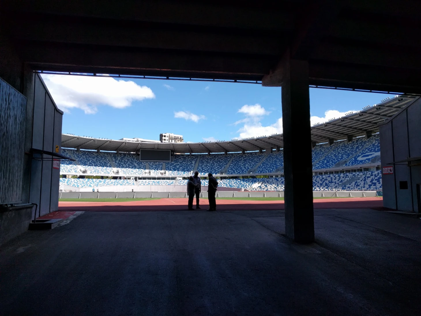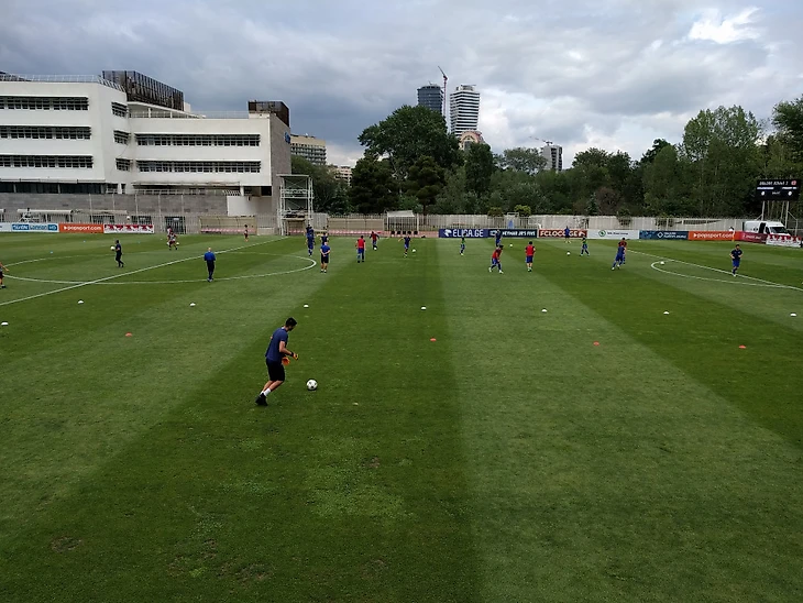 Нам разрешили пройти к полю стадиона, оказалось, что игра будет проходить не на нем, а на тренировочном поле. Очень жаль, как раз только 5 минут назад шутили, что вдруг игра будет проходить сразу же после детской тренировки на тренировочном поле, так и получилось.