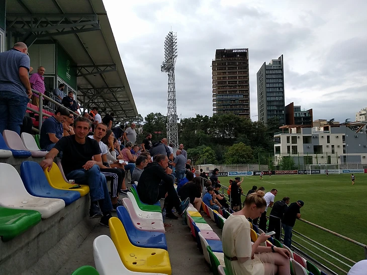 Приезжаем на стадион имени Михаила Месхи, именно здесь будет проходить игра, идем к кассе, билет стоит 3 лари (~80 рублей), голландцы покупают мне его, не смотря на мое желание купить его самостоятельно.