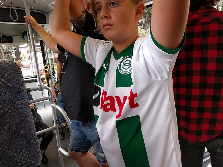 Matchday, я стою на автобусной остановке в Тбилиси, которая находится на площади Свободы, и я вижу, что недалеко стоит пацан в футболке ФК Гронинген, спустя несколько минут, заходя в автобус, его отец спрашивает меня: "Do you speak english?" и начинается мое знакомство с семьей голландцев, которые болеют за ФК Гронинген. Оказалось, что они тоже едут на этот матч. В автобусе глава семейства рассказывает мне про их клуб, что в нем играли Суарес, Роббен, Куман и Гранквист, который из Краснодара и что их японский игрок Рицу Доан будущая звезда. Я же сказал, что я за Rubin Kazan.