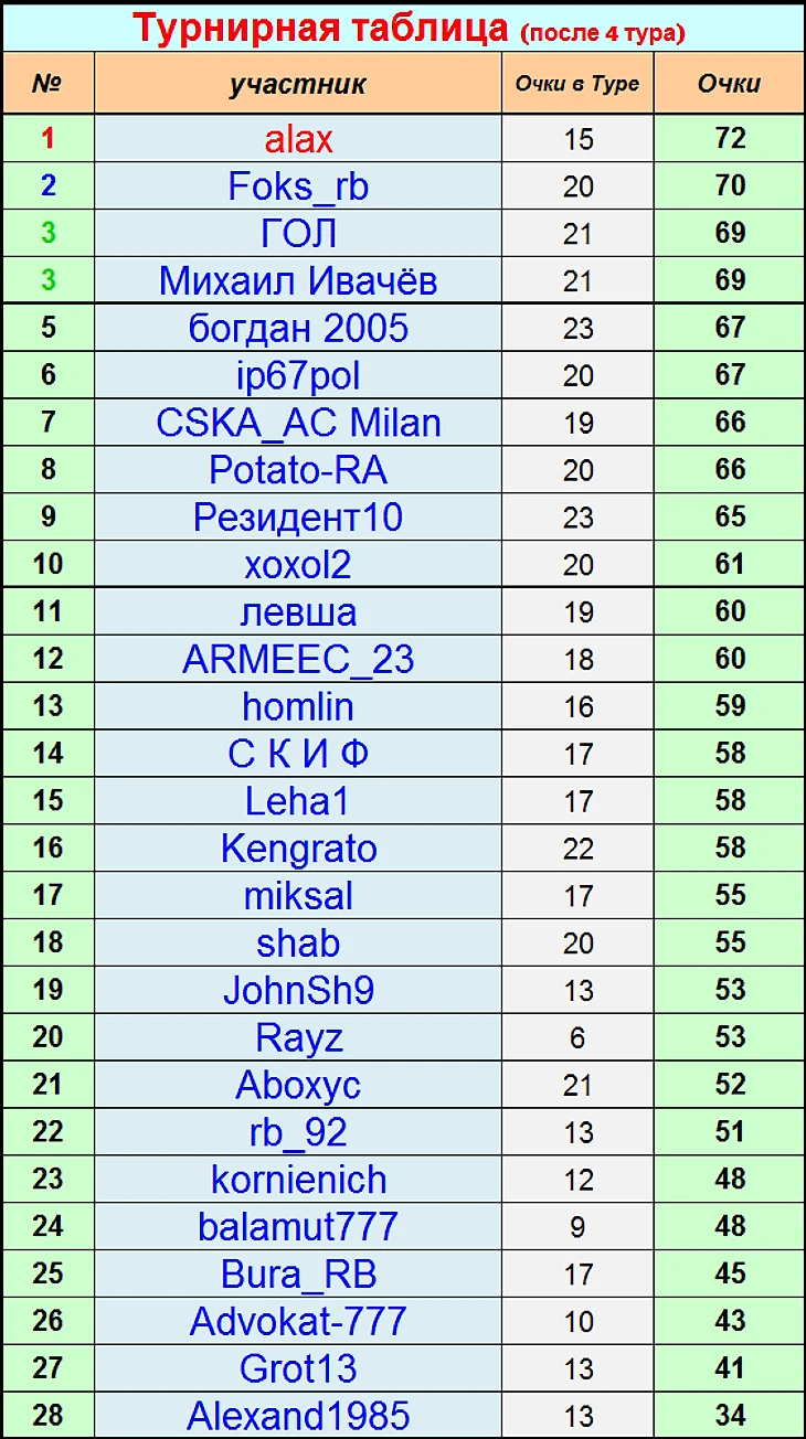 Лидер Чемпионата ФФ - Александр alax - 72 очка!