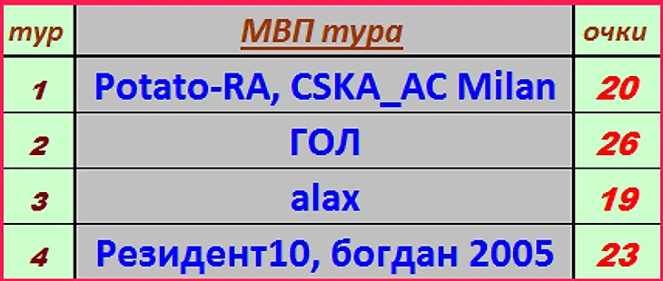 Привет Всем! Подводим итоги очередных туров прогнозного турнира в Лиге РА...