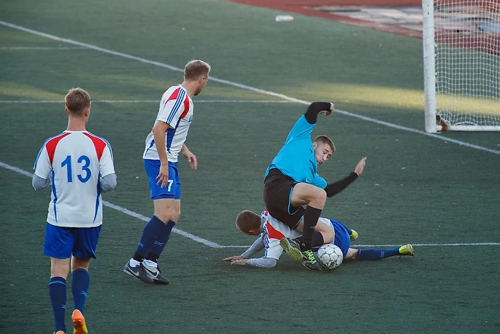 А дальше – больше. За несколько минут до финального свистка в штрафной Усть-Выми произошло столкновение – защитник, пытаясь прервать атаку, то ли сыграл в мяч, то ли сбил нападающего – непонятно, VAR в регионах пока нету. Зато были споры с судьями, маты и «скорая помощь», забравшая защитника с собой. Так как замен уже не было – Усть-Вымь осталась в меньшинстве и попыталась отбиться от осады соперника на угловом. Не вышло – хороший навес – точный удар – и уже другой защитник рукой выбивает мяч из ворот. Здесь арбитры ставят железный пенальти, после которого счет сравнивается: 4-4.