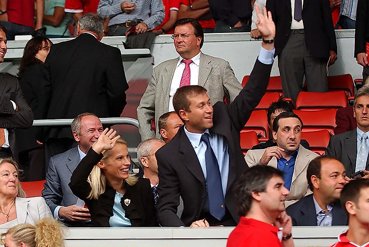Роман Абрамович со второй женой Ириной и Евгением Гинером на матче «Ливерпуль» – «Челси», 2003 год