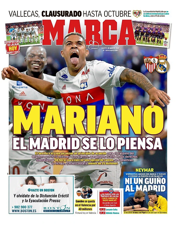 Вчера в испанских СМИ была опубликована новость о том, что Севилья почти договорилась о покупке Мариано, но у сливочных есть право заблокировать трансфер Диаса и повторить предложение севильцев ("право первого слова") в течении 48 часов, и тогда Мариано отправится в Мадрид.