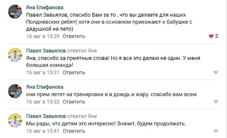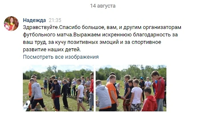 Главной нашей наградой стала благодарность родителей за то, что стараемся сделать жизнь их детей интересней. Некоторые из них говорили «спасибо» на поле, некоторые писали приятные слова в социальных сетях. Пара примеров: