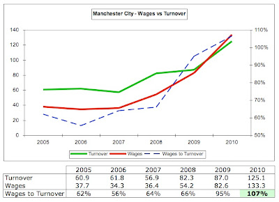 Хотя доходы «Ман. Сити» выросли на впечатляющие 44% в сезоне 2009/2010 (до 125 млн.фунтов), и позволили «городанам» подняться на 11-е место в итоговом отчёте Deloitte, однако они всё ещё далеко позади других ведущих клубов Европы. Например, их доход меньше, чем половина прибыли «Манчестер Юнайтед» (286 млн. фунтов), и на 100 миллионов фунтов меньше, чем суммарный доход «Арсенала» (224 млн. фунтов). На континенте же соперничать с такими клубами, как «Реал» (359 млн. фунтов) и «Барселона» (326 млн. фунтов) не представляется возможным, так как испанские гранды ежегодно зарабатывают на 200 миллионов фунтов больше, чем «Сити».