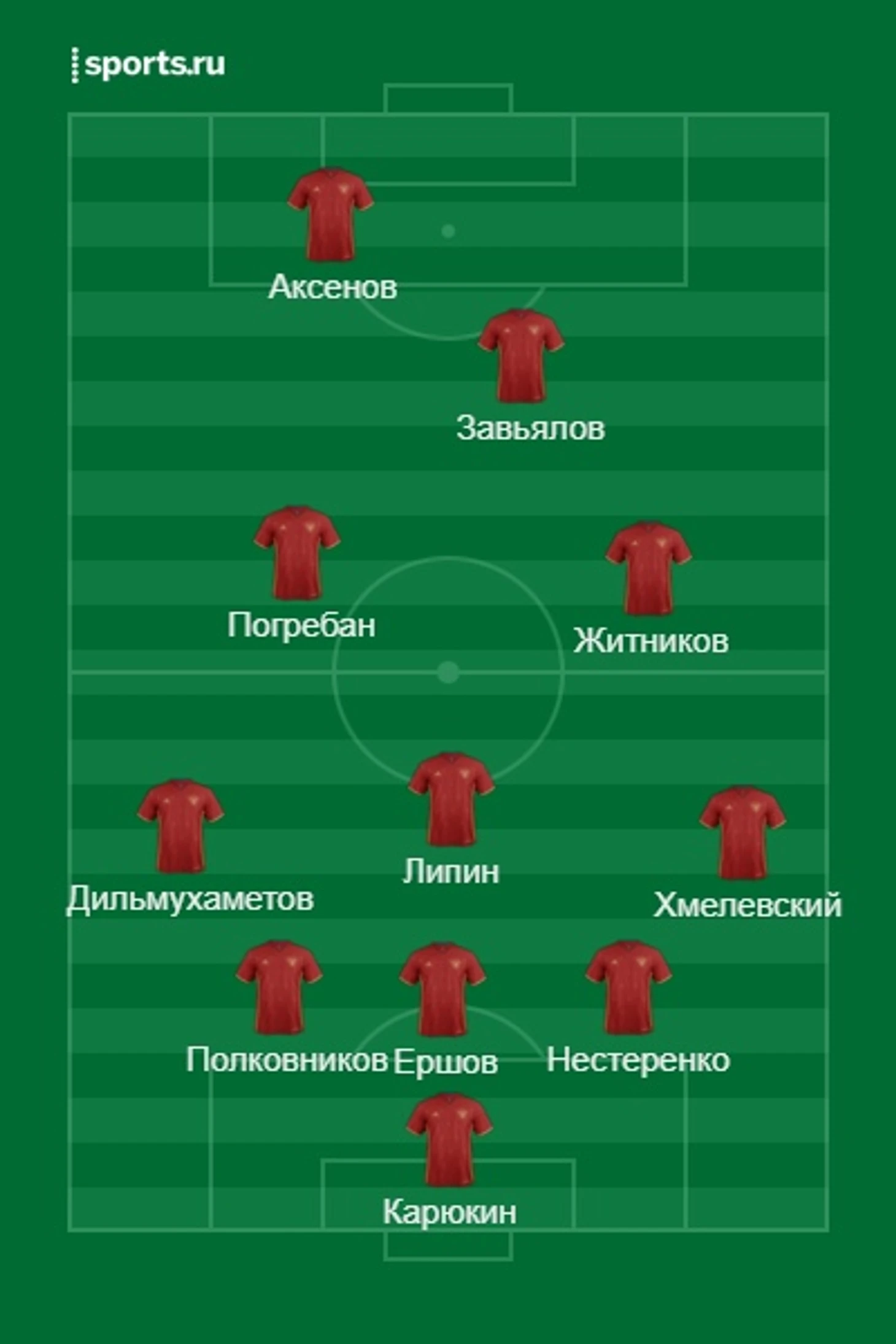 2. 3-3-2-2 Сыграть в два нападающих. Аксенова как чуть фактурного выдвинуть немного вперед. Но при этом латерали в лице Дильмухаметова (Шибаева) и Хмелевского должны полность "пропахивать" свои фланги.