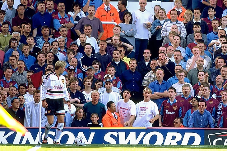 Во втором туре «МЮ» играл на выезде с «Вест Хэмом». На стоянке перед стадионом Бекхэма встретили больше сотни фанатов «Вест Хэма», выкрикивавших оскорбления. Бекхэму понадобилась помощь полиции, чтобы попасть на стадион. Весь матч на стадионе скандировали: «Пусть твой сын умрет от рака», «Убирайся из Англии, ублюдок», «Твоя жена обожает анальный секс». Жестокость фанатов шокировала даже главного арбитра Дэвида Эллерэя, который во время игры поддержал Дэвида.