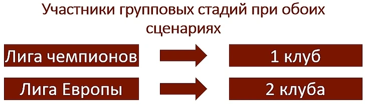 Ниже указано, сколько и на какие стадии еврокубков лига будет делегировать свои клубы при этих двух сценариях: