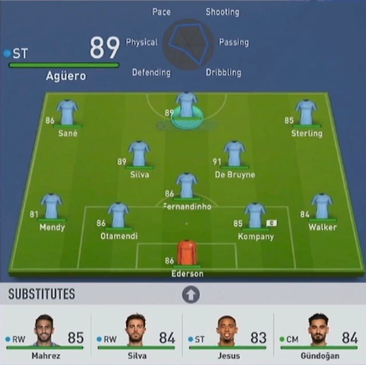 Рейтинг игроков «Манчестер Сити» в FIFA 19
