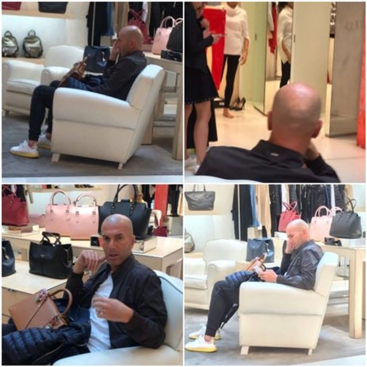 Экс-тренер "Реала" Зинедин Зидан проводит свой заслуженный отдых со своей семьей. Итальянский журналист Танкреди Палмери из beINSport запечатлил, как Зидан скучает в ожидании жены Вероники пока та на шоппинге.