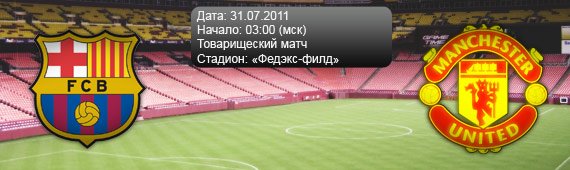 Ну что же, теперь осталось только пожелать удачи игрокам «Юнайтед». Хотелось бы верить, что Фергюсон придумает, как отобрать мяч у каталонцев, ведь именно этот фактор приносил «Барселоне» победу в последних двух финалах. Смотрите матч и болейте за «Манчестер Юнайтед»!