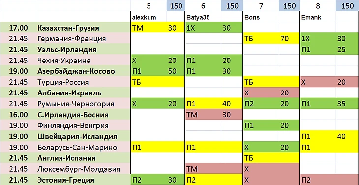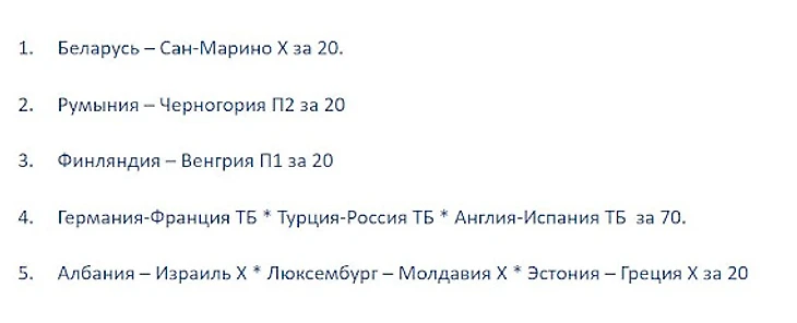Примечание : #12 Беларусь-Сан-Марино тотал именно 3.5