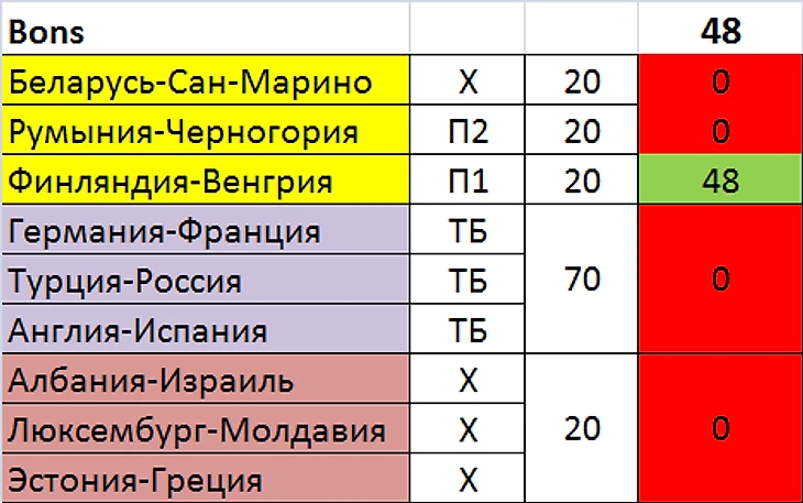 Ошибка в таблице : #10 Финляндия-Венгрия ТБ 2.5 именно 2.75