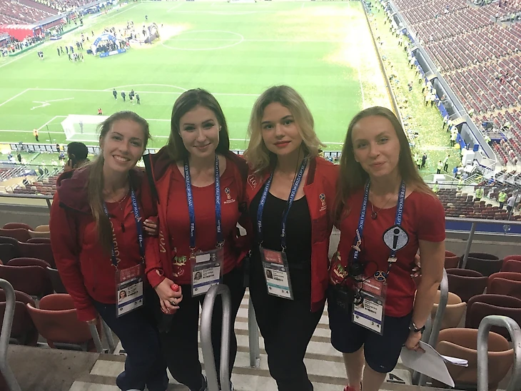 Обязанности были схожие — и во время Кубка Конфедераций, и на Чемпионате мира я по специально заключенному временному контракту работала в Оргкомитете, являлась сотрудником департамента по организации сервисов для зрителей, была там супервайзером, то есть руководила волонтерами. На Кубке Конфедераций у меня в подчинении было 32 человека, на Чемпионате мира уже больше пятидесяти.