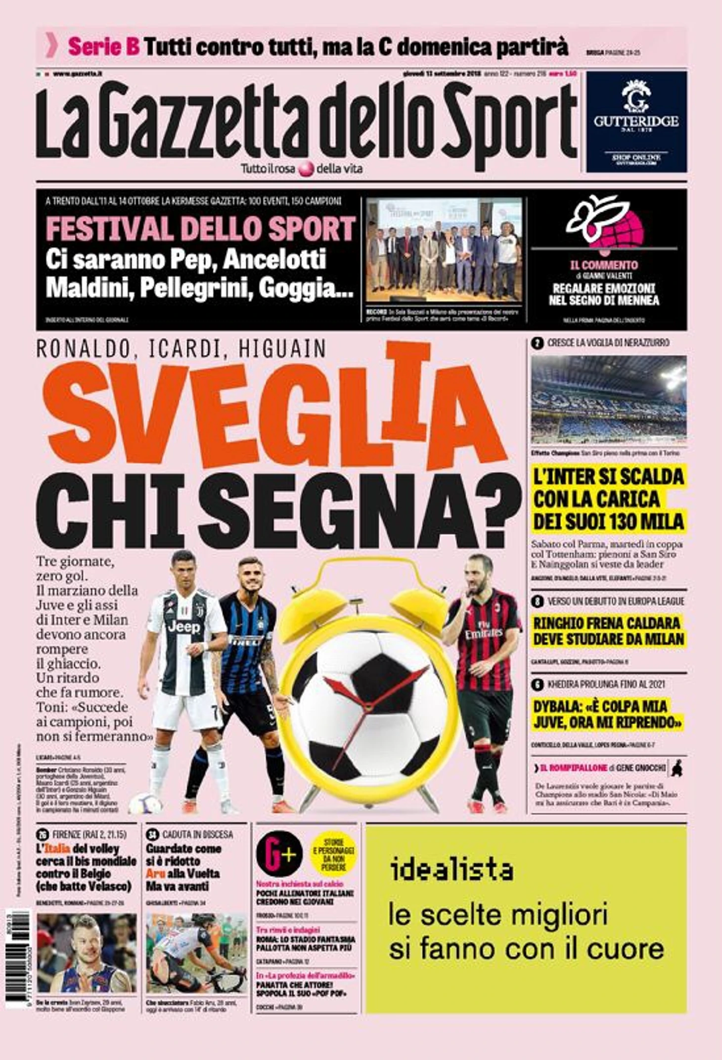Просыпайтесь, кто забьёт? Заголовки Gazzetta, TuttoSport и Corriere за 13 сентября