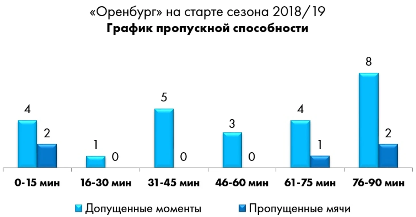 Что касается обороны, головной болью для «Оренбурга» на старте сезона оказались навесные стандарты соперника. После розыгрыша угловых и штрафных «горожане» пропускали от «Спартака», «Анжи» и «Динамо», а в матче с «Крыльями Советов» получили в свои ворота пенальти (который, впрочем, самарцы реализовать не смогли).