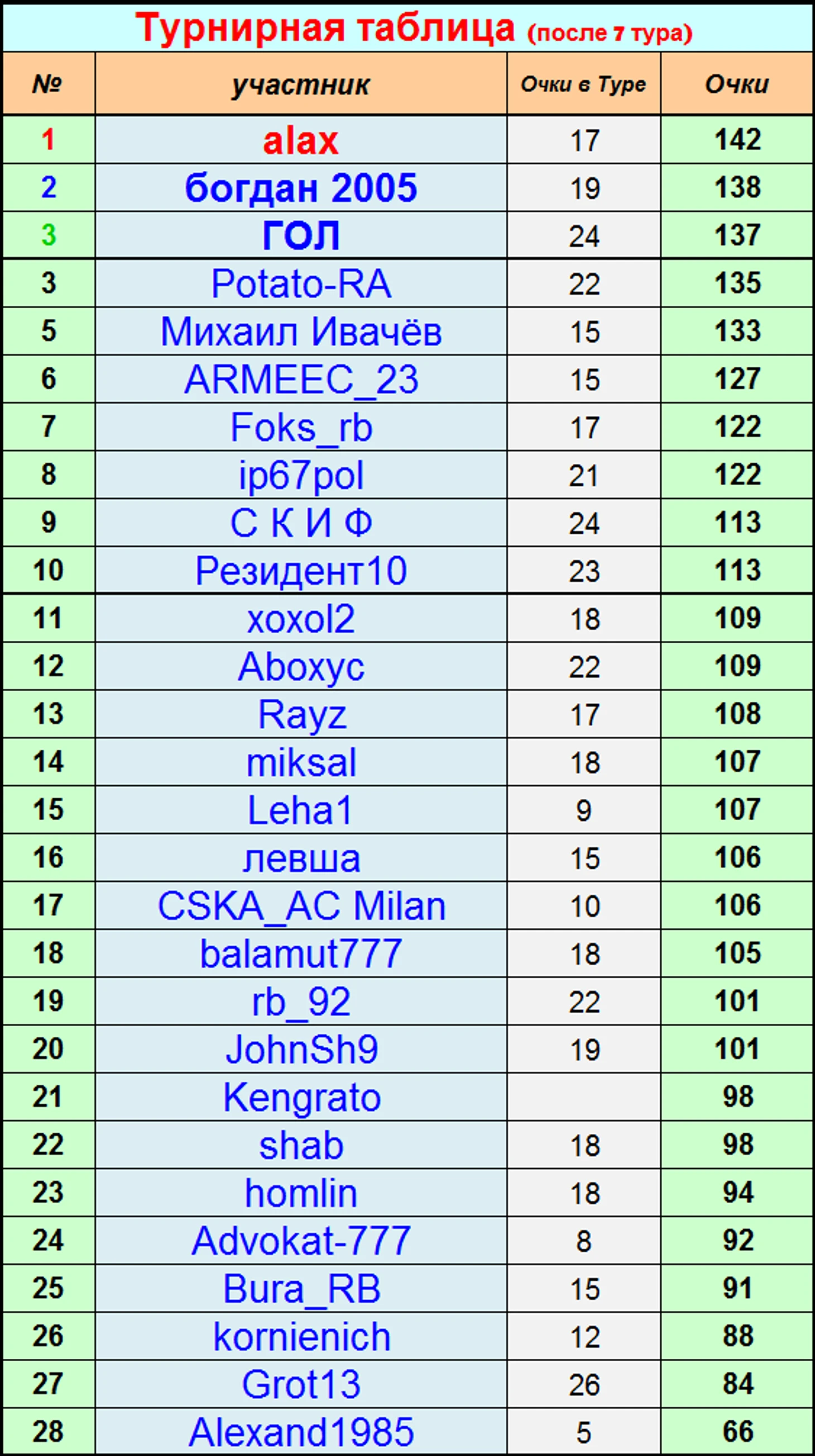 ЛИДЕР Чемпионата ФФ - Александр alax - 142 очка!!!
