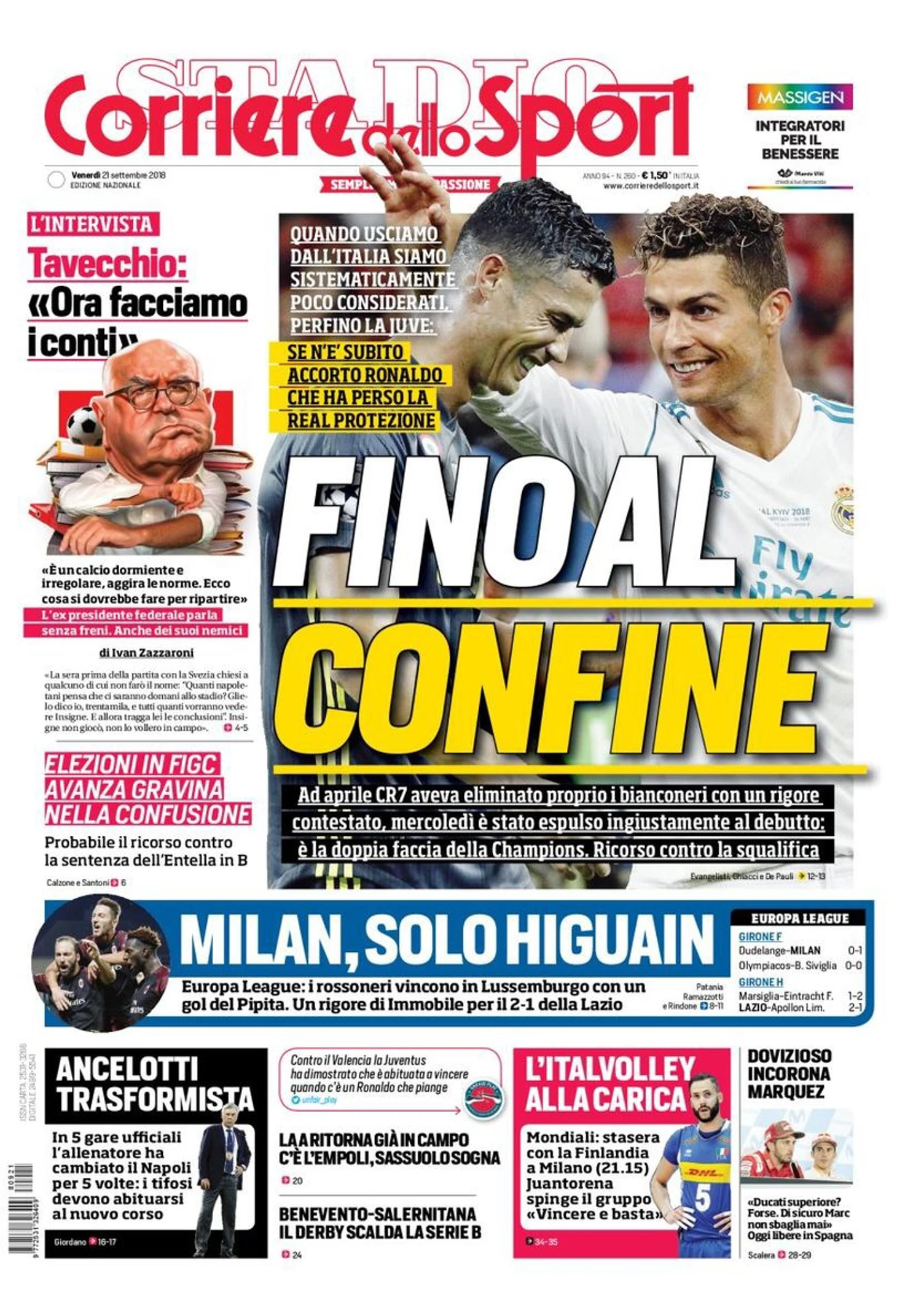 Когда мы покидаем Италию, мы систематически слабо объединены, особенно «Юве»: это немедленно заметил Роналду, который потерял поддержку «Реала». В апреле CR7 выбил как раз Бьянконери со спорного пенальти, в среду он был неверно удалён в дебютном матче: это двуличность Лиги Чемпионов. Апелляция по дисквалификации.