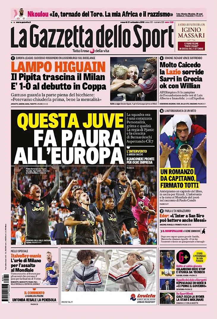Этот «Юве» внушает страх в Европе. Заголовки Gazzetta, TuttoSport и Corriere за 21 сентября