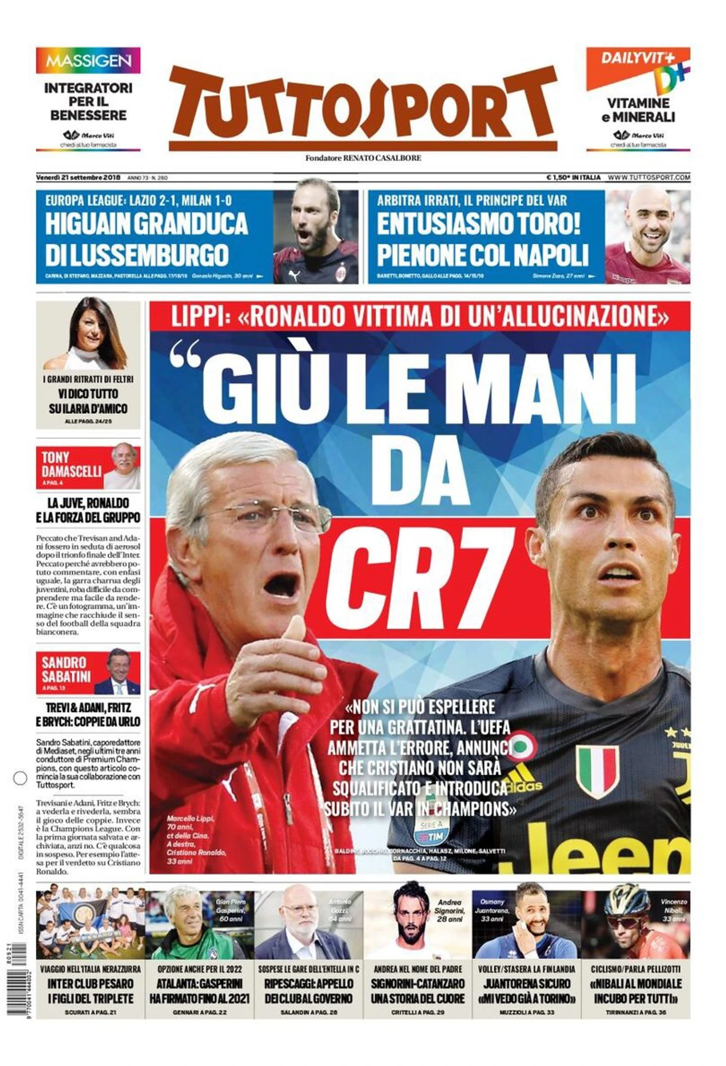 Липпи: «Роналду – жертва галлюцинаций». «Больше не удаляют за царапину. УЕФА признает ошибку, и объявит, что Криштиану не будет дисквалифицирован и сразу введёт VAR в Лиге Чемпионов».