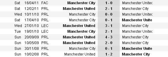 «Горожане» одержали победу в последнем манчестерском дерби на «Уэмбли», выбив «красных дьяволов» из Кубка Англии в полуфинале турнира16 апреля 2011 года,, победив со счетом 1-0, благодаря голу Яя Туре.