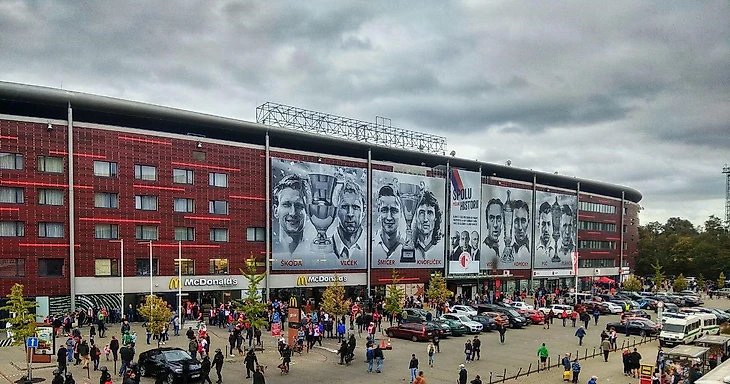 Вокруг красно-белого "Эдена" - огромная парковка, торговый комплекс и множество тренировочных полей. Все как у больших клубов. "Доличек" же (стадион "Богемианс") очень "домашний" - вокруг него обычные девятиэтажки, с балконов которых тоже можно посмотреть футбол, если не хочется спускаться и платить 6 евро за билет.
