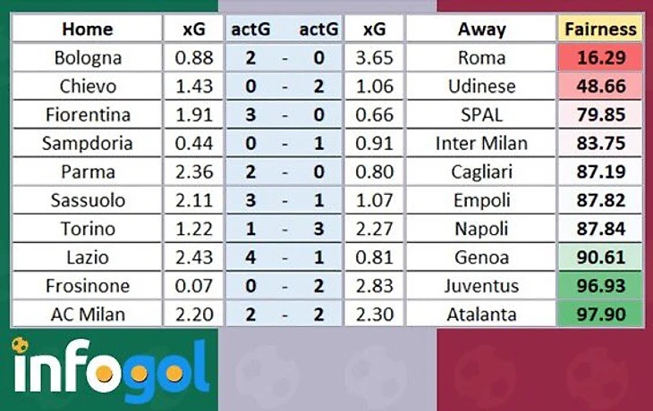 Оценка справедливости результатов 5-го тура Серии А от Infogol