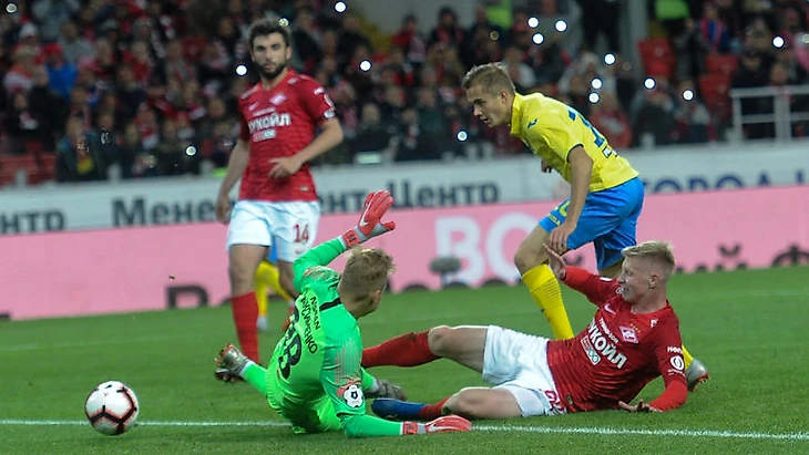 Ростов в свою очередь показал очень собранную игру, а Карпин продемонстрировал, как можно раскрывать лучшие стороны средних по меркам российского чемпионата игроков. Выбранные 5-3-2 с мобильной тройкой в середине поля и постоянно играющих за линией мяча двух нападающих определенно поставили в тупик красно-белое нападение. Иногда казалось, что куда ни взгляни – игроков в желто-синей форме больше. Малые расстояния между линиями и игроками не позволяли спартаковцам получать мяч в разреженных зонах, а крайние защитники Ростова, оставаясь со своими визави, препятствовали быстрым переводам мяча с фланга на фланг. Возможно, собранный состав ростовчан как раз-таки создан именно для такой вязкой игры со множеством борьбы, потому что по-другому нельзя объяснить большое количество проигранных единоборств и подборов после стандартных положений. Не дав создать ничего возле своих ворот, Ростов грамотно воспользовался единственным провалом красно-белых, убежав в контратаку. Многие скажут, что Зуева зря отпустили, однако, как часто вы о нем вспоминали до этого матча?