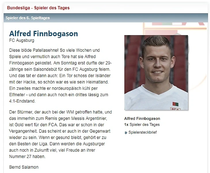 После хет-трика «Фрайбургу» Финнбогассон стал лучшим бомбардиром клуба в Бундеслиге - 25 мячей.