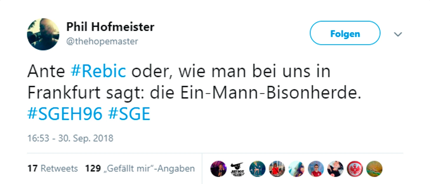 Во Франкфурте для 96-х все стало плохо уже в первом тайме — Аллер не забивал, но раздавал голевые: сначала Ндике, а под конец тайма Ребичу. 2-0 к перерыву. На второй тайм Брайтенрайтер выпустил двух нападающих — всеми любимого Вайдандта и Бобби Вуда. Не сказать, чтобы сильно помогло — за первый тайм «Ганновер» ни разу не ударил в створ, за второй ударил один — и забил. Жаль, что дебютант Флоран Муслийя отличился уже при счете 3-0.