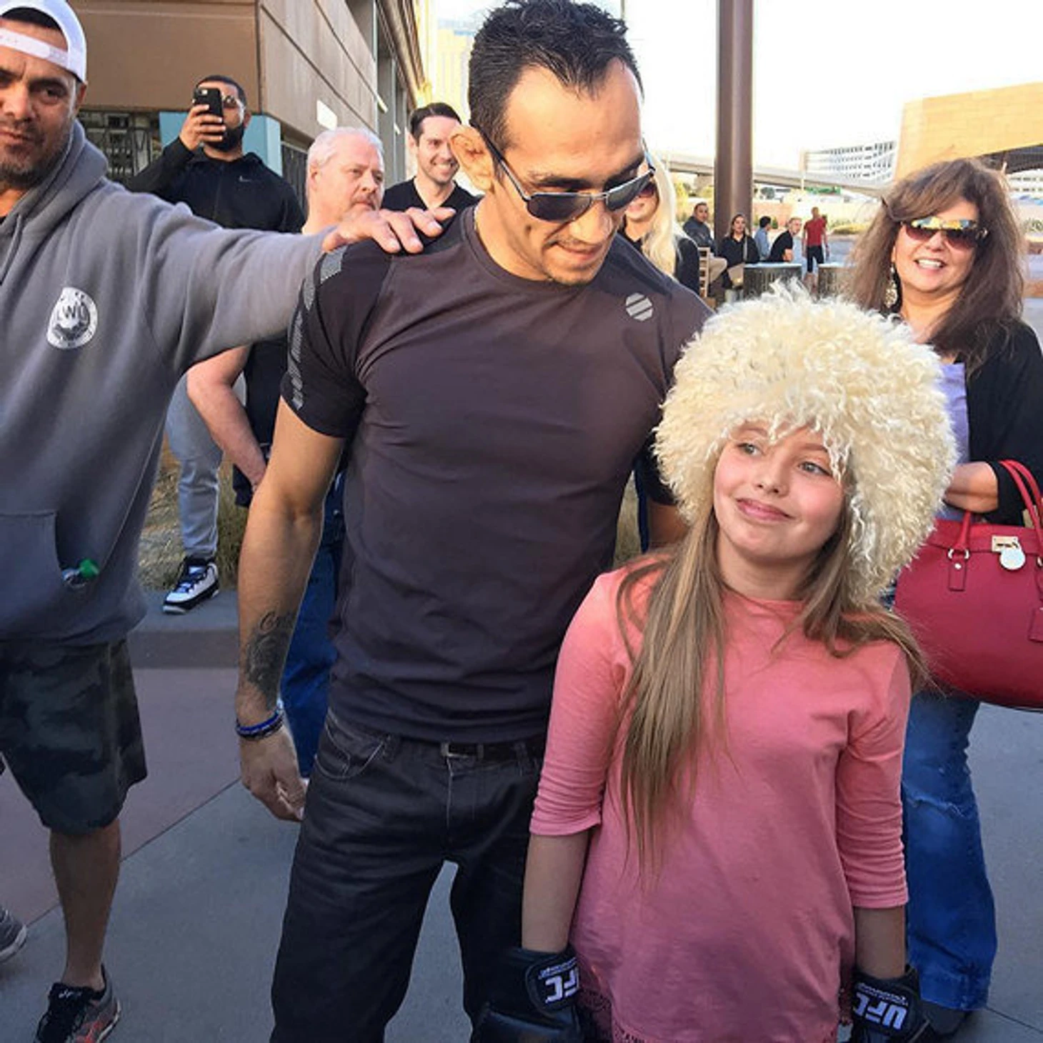 Когда Хабиб смял Барбозу в декабре 2017-го, в клетку к россиянину поднялась маленькая фанатка по имени Кайли – дочь британского певца Джей Си Каннегетье, который выступает под псевдонимом Number1hater. Нурмагомедов познакомился с девочкой еще раньше, назвал частью команды и придумал прозвище – Мини-Хабиб.