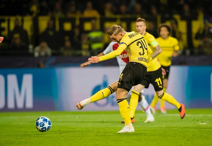 Сейчас «шмели» уверенно выступают и во внутреннем первенстве, и в Европе. По сравнению с последним туром Бундеслиги осталась половина команды: с первых минут вышел Пищек, Санчо, Алькасер и Вольф вместо Хакими, Пулишича, Филиппа и Ларсена. Но первый тайм прошёл даже менее интересно, чем против «Байера» — единственный опасный момент за тайм создал Вольф, когда пробил с радиуса после суматохи в штрафной «Монако». Бенальо вытащил удар немца, но дёрнул мышцу — уже через несколько минут его заменил Субашич. Для хорвата матч в Дортмунде стал первым в сезоне.