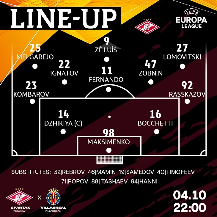 Источники: оф. сайт «Спартака», оф. твиттер «Вильярреала»