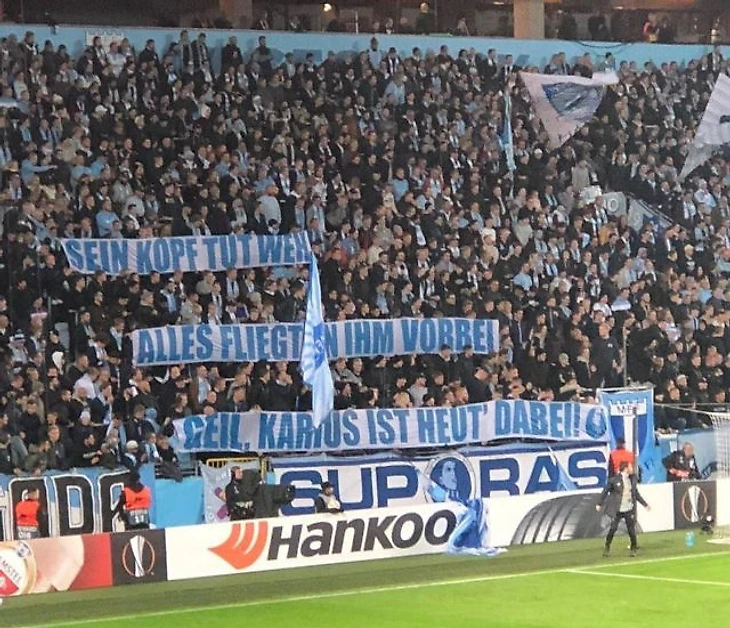 Болельщики «Мальме» вывесили баннер, в котором затролили Кариуса. Во втором тайме он привез гол